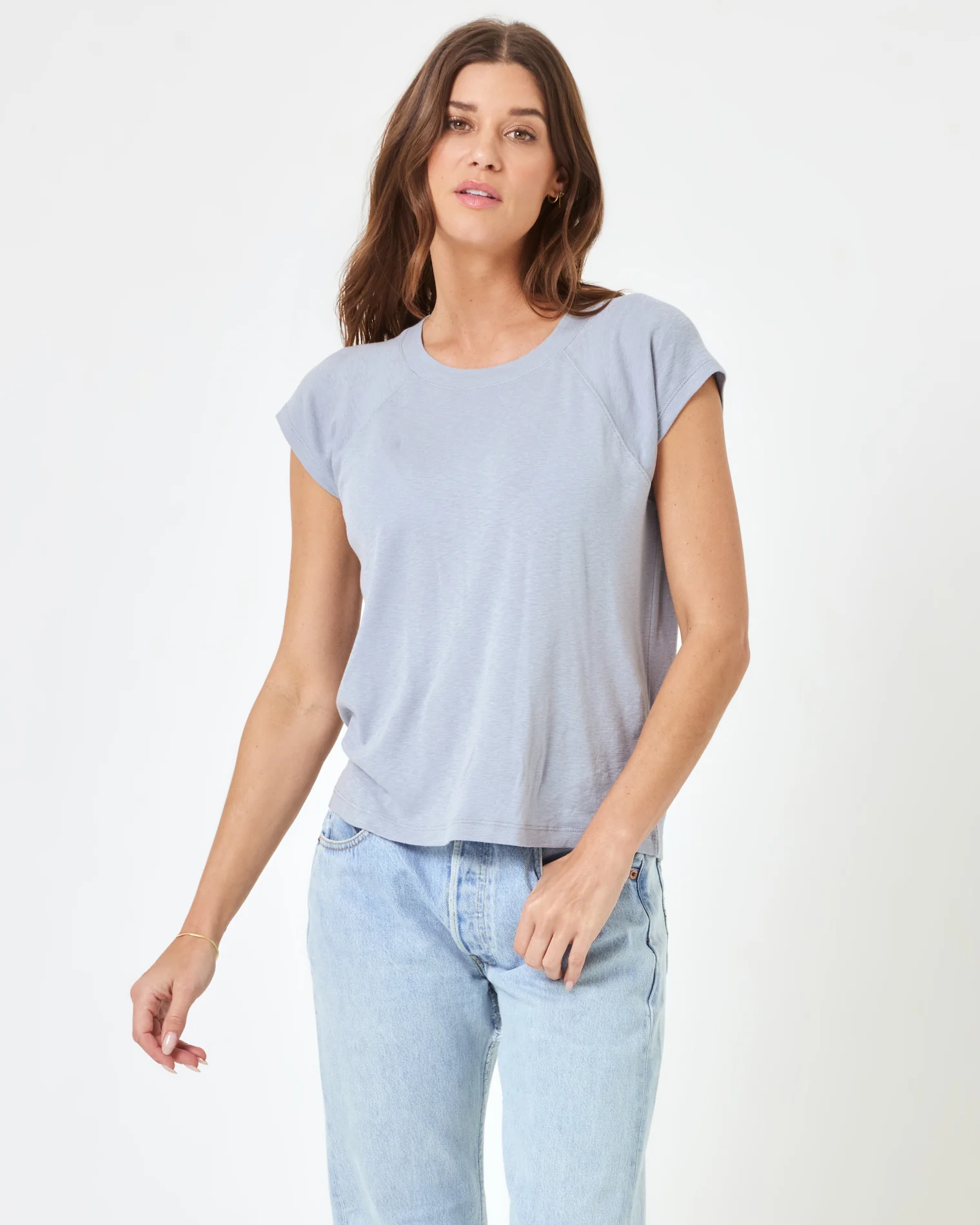 Our coveted All Day tee got a new luck in a dreamy lightweight fabric. The Sunday Tee has the same fit you know & love, featuring slightly cropped sleeves. Your new favorite everyday basic!
